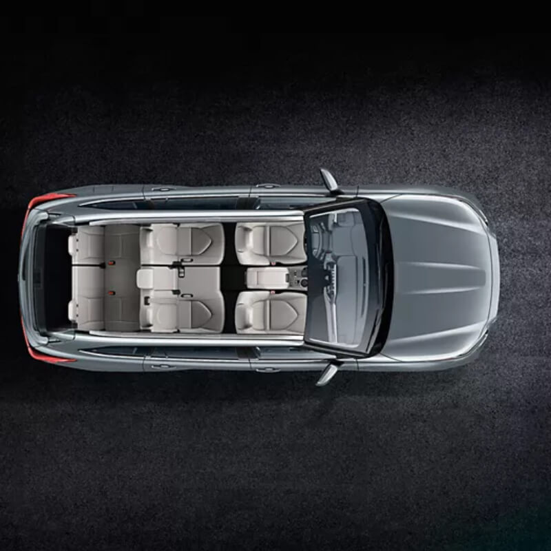 Toyotą Highlander może wygodnie i stylowo podróżować aż siedem osób – nawet w trzecim rzędzie jest dość miejsca dla dwóch dorosłych pasażerów. Wszyscy mają dostęp do licznych schowków oraz gniazd USB umożliwiających podłączenie urządzeń multimedialnych.